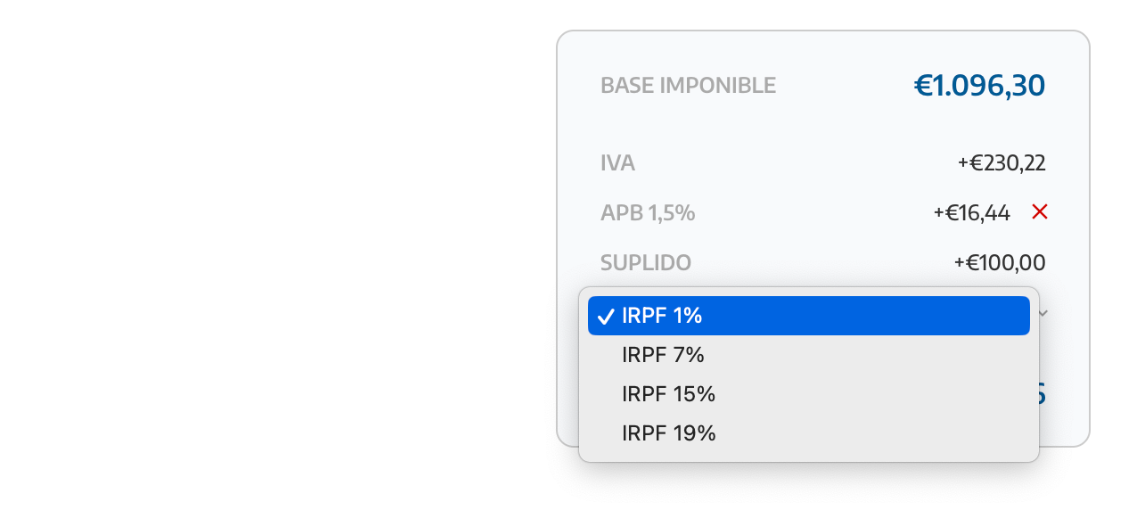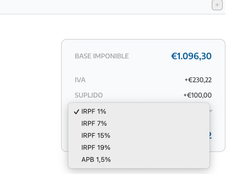 Puedes incluir varios impuestos que sean de aplicación a la Base Imponible del documento.