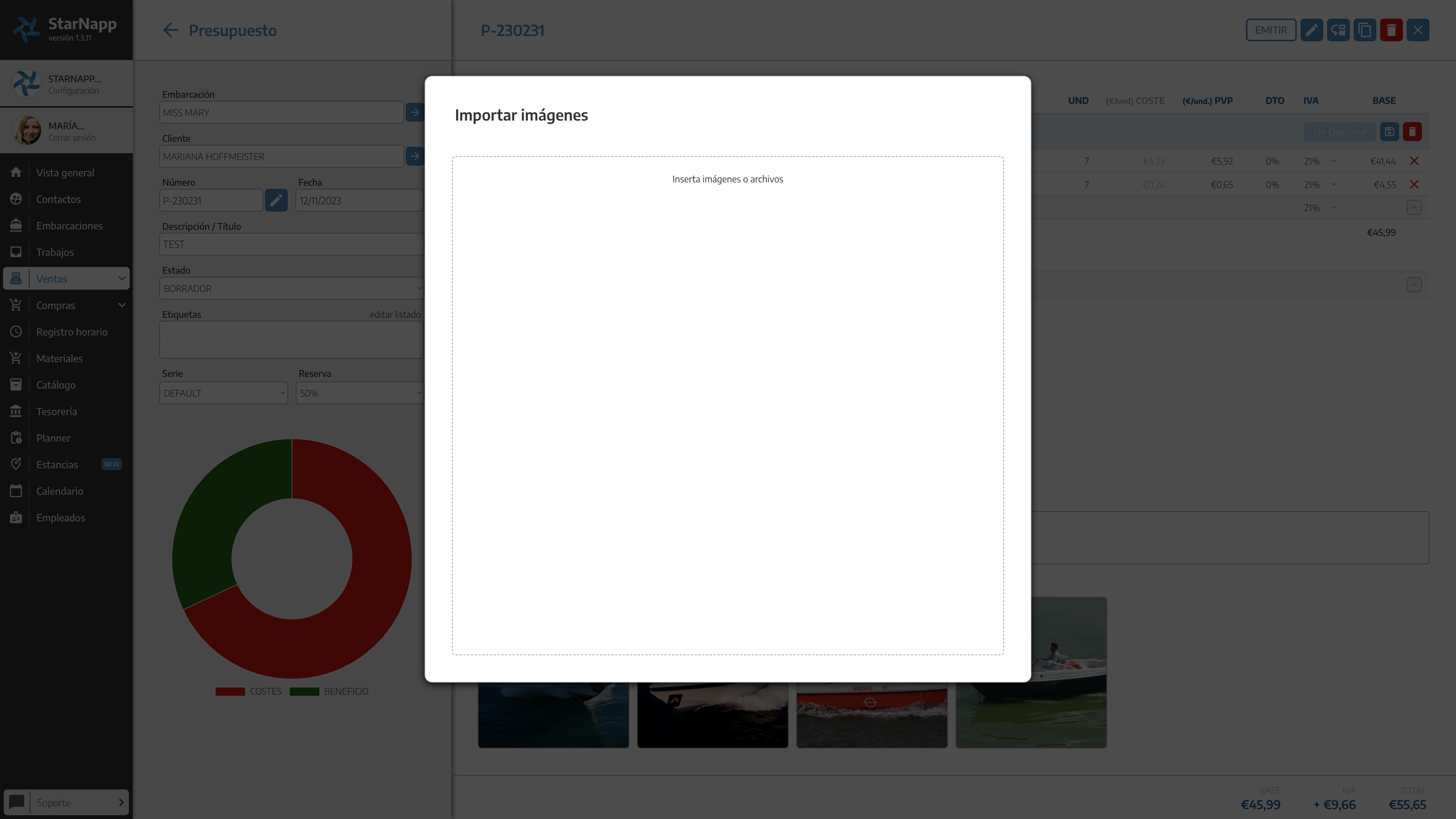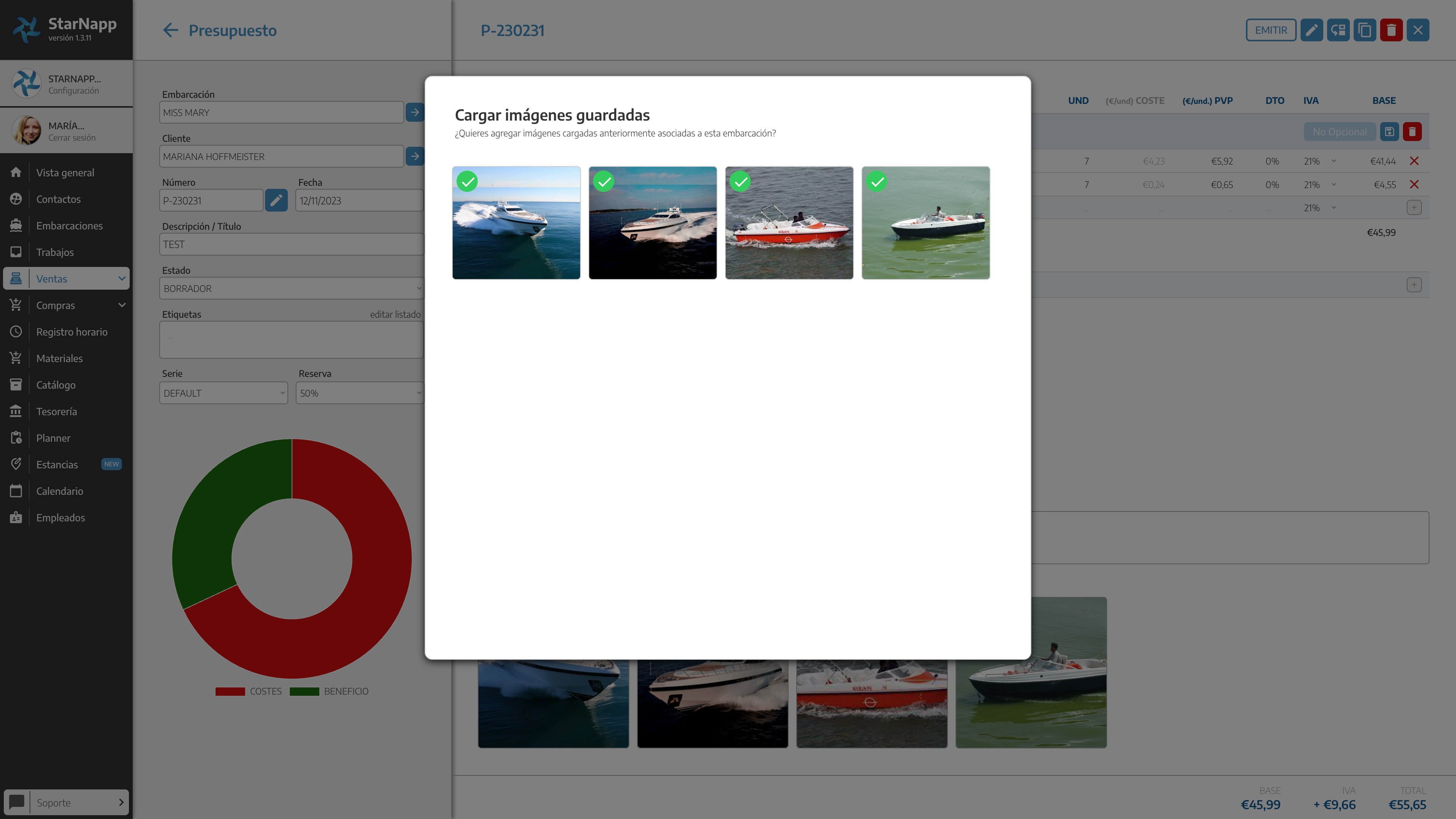 Si pulsamos el botón de opción de carga de imágenes ya existentes en la Orden de Trabajo o embarcación donde deberemos seleccionar las imágenes que queremos cargar en el documento.