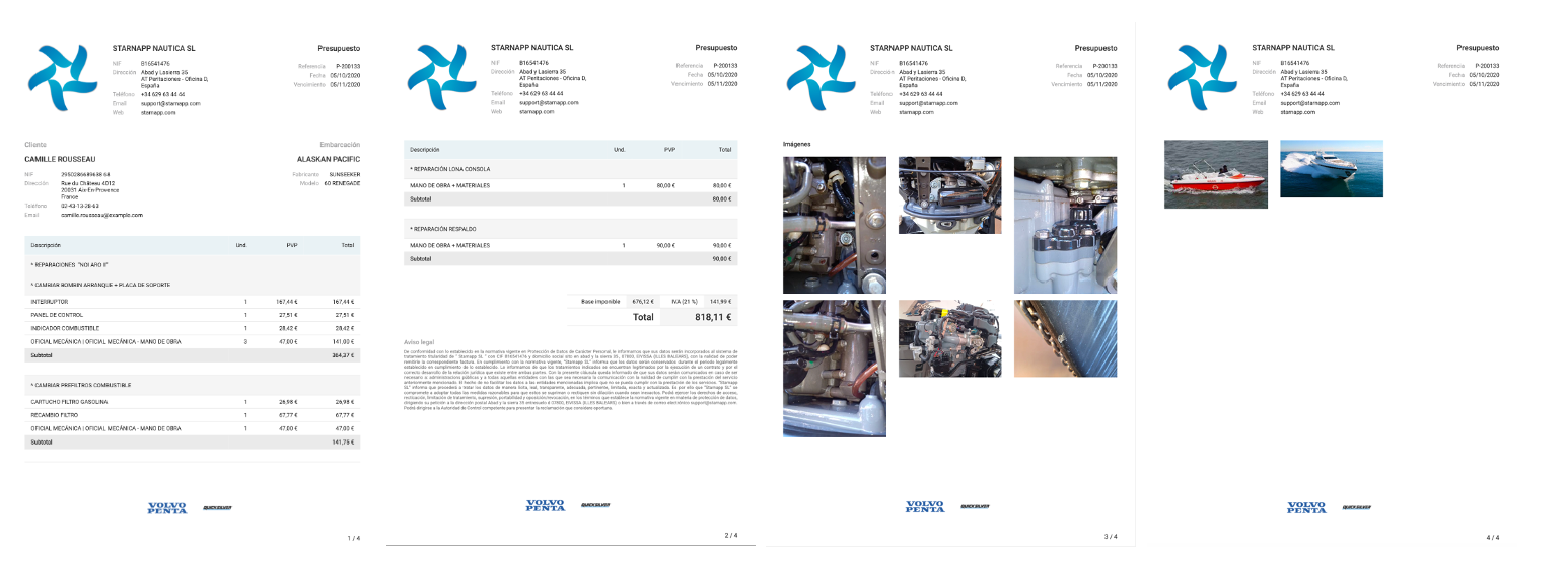 El cliente puede verificar en el propio documento los trabajos efectuados y daños que presentaba la embarcación y/o las reparaciones realizadas.