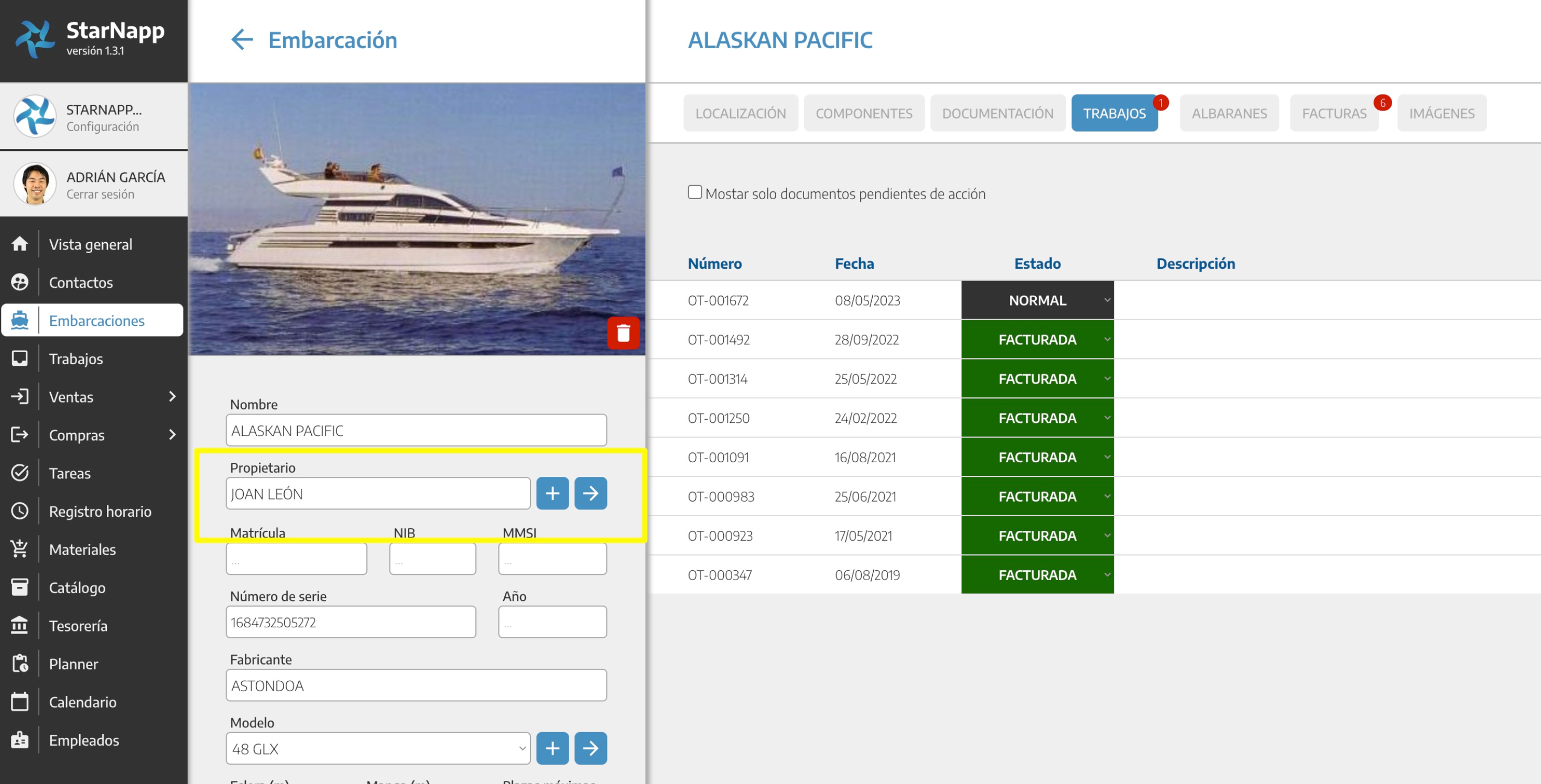 En el menú de la embarcación disponemos de la posibilidad de cargar una imagen de identificación de dicha embarcación, pulsando el icono ➕ que se encuentra en la zona de la imagen y donde aparece una cámara de fotos. Esta imagen estará relacionada ...