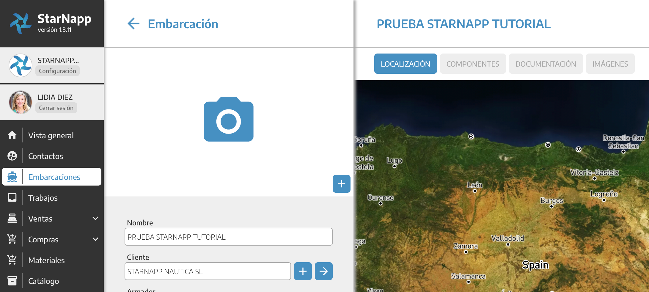 En el menú de la embarcación disponemos de la posibilidad de cargar una imagen de identificación de dicha embarcación, pulsando el icono ➕ que se encuentra en la zona de la imagen y donde aparece una cámara de fotos.