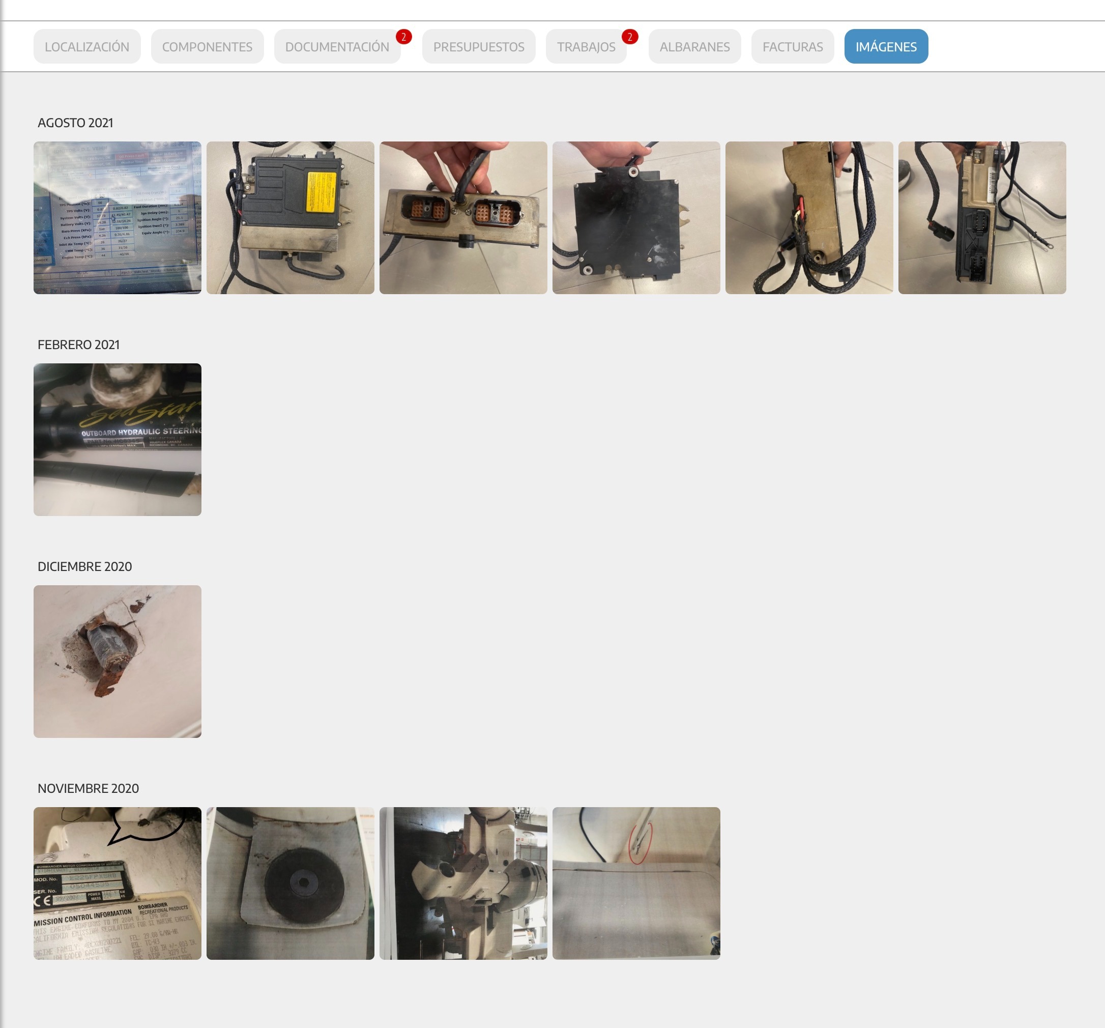 Una vez se ha efectuado la carga en la orden de trabajo de las fotografías a lo largo de los trabajos se irá generando de forma ordenada un archivo de fotografías sobre los trabajos efectuados en la embarcación.