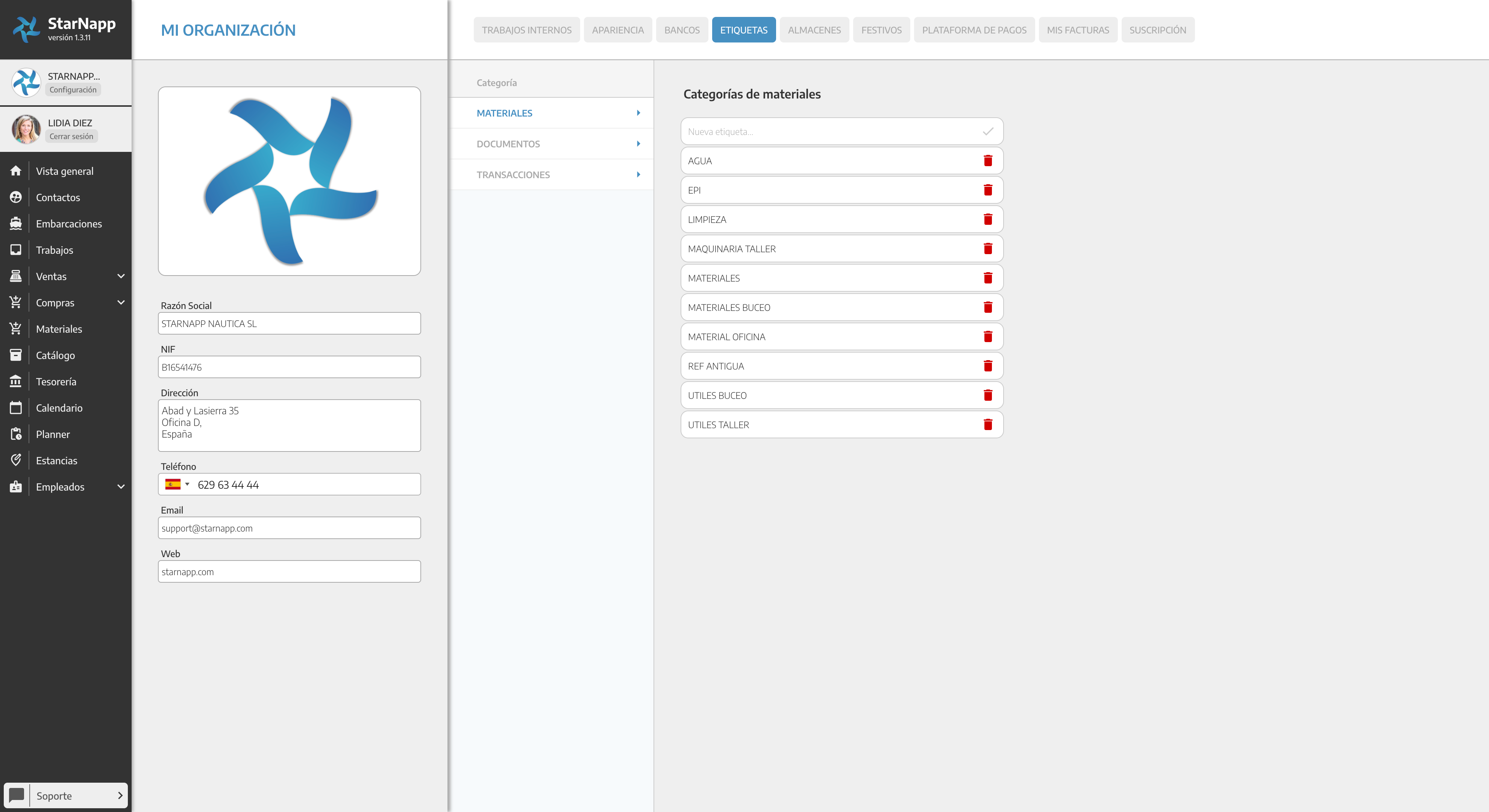 Donde podrás crear etiquetas donde indiques el tipo de material o si precisas de un global como por ejemplo, aceites, rodamientos, o cualquier identificación que posteriormente puedas filtrar en una búsqueda. Por ejemplo, quiero ver todos los aceites que tengo en stock o en el catálogo y al filtrar por la etiqueta "aceites" aparecerían todos los existentes independientemente de la marca, a los que le hubiera añadido dicha etiqueta.