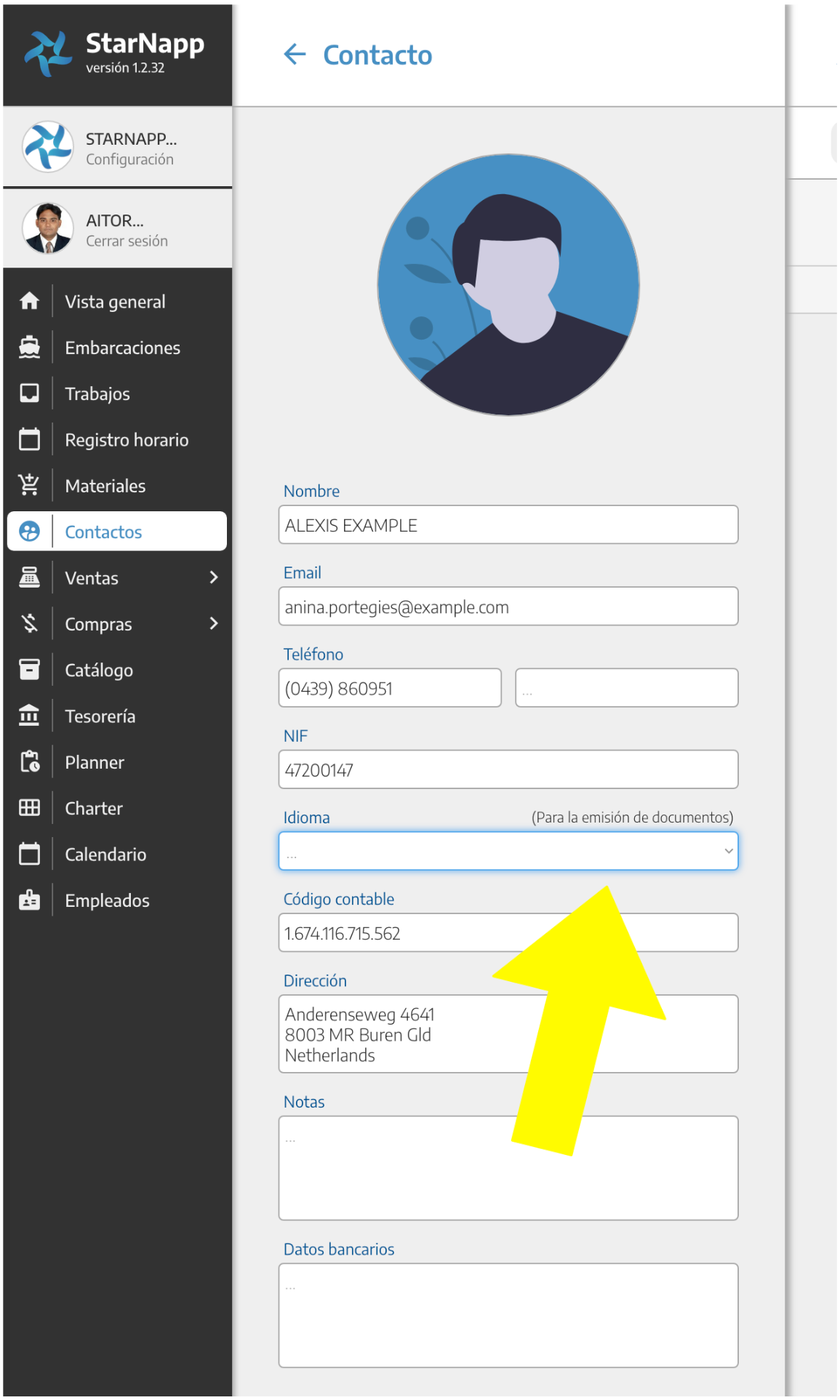 Si por un casual quieres hacer un documento de forma puntual a un cliente en inglés puedes cambiar la opción en el CONTACTO y revertir posteriormente el cambio de idioma y cada documento que se va generando será en el idioma que tienes seleccionado.