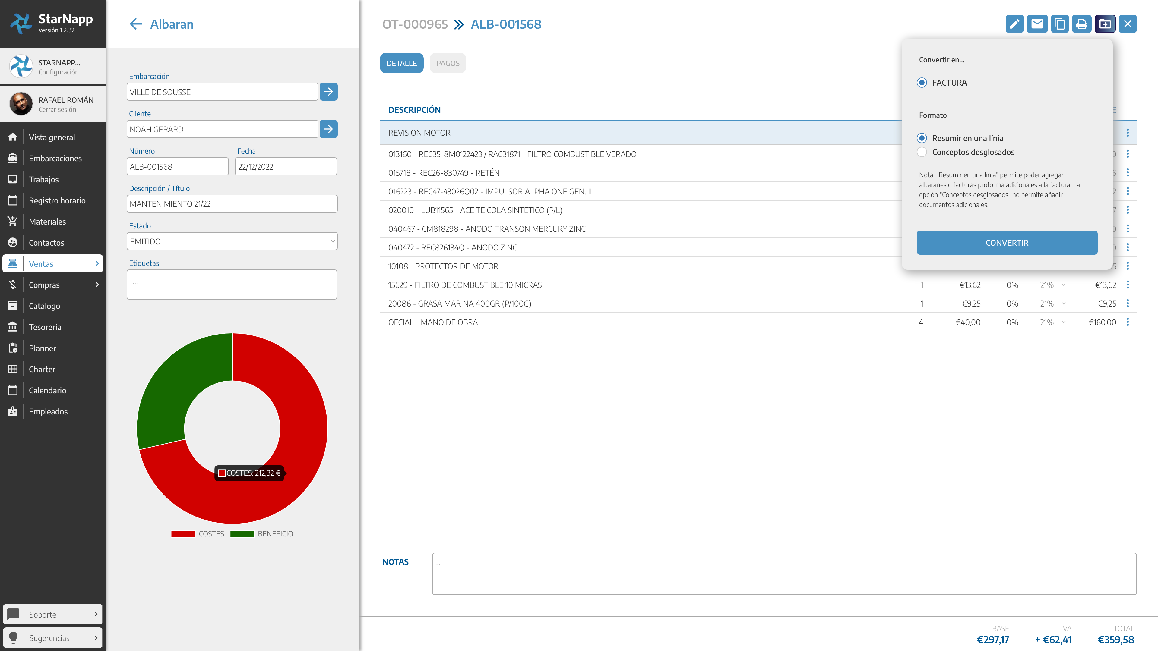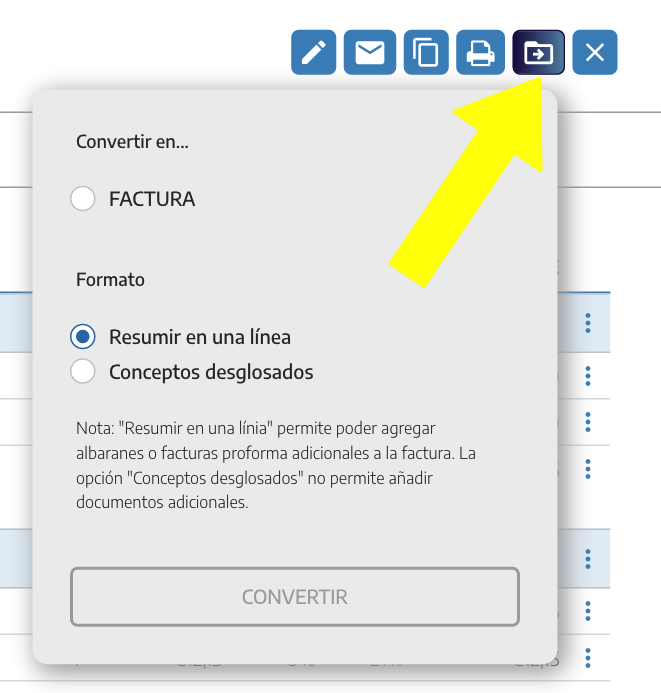Una vez tenemos un Albarán EMITIDO si recibimos la factura del proveedor y queremos convertir ese albarán en una factura es tan sencillo como hacer click arriba a la derecha en la carpeta con una ➡️ y se nos abrirá una ventana tipo pop-up donde nos ...