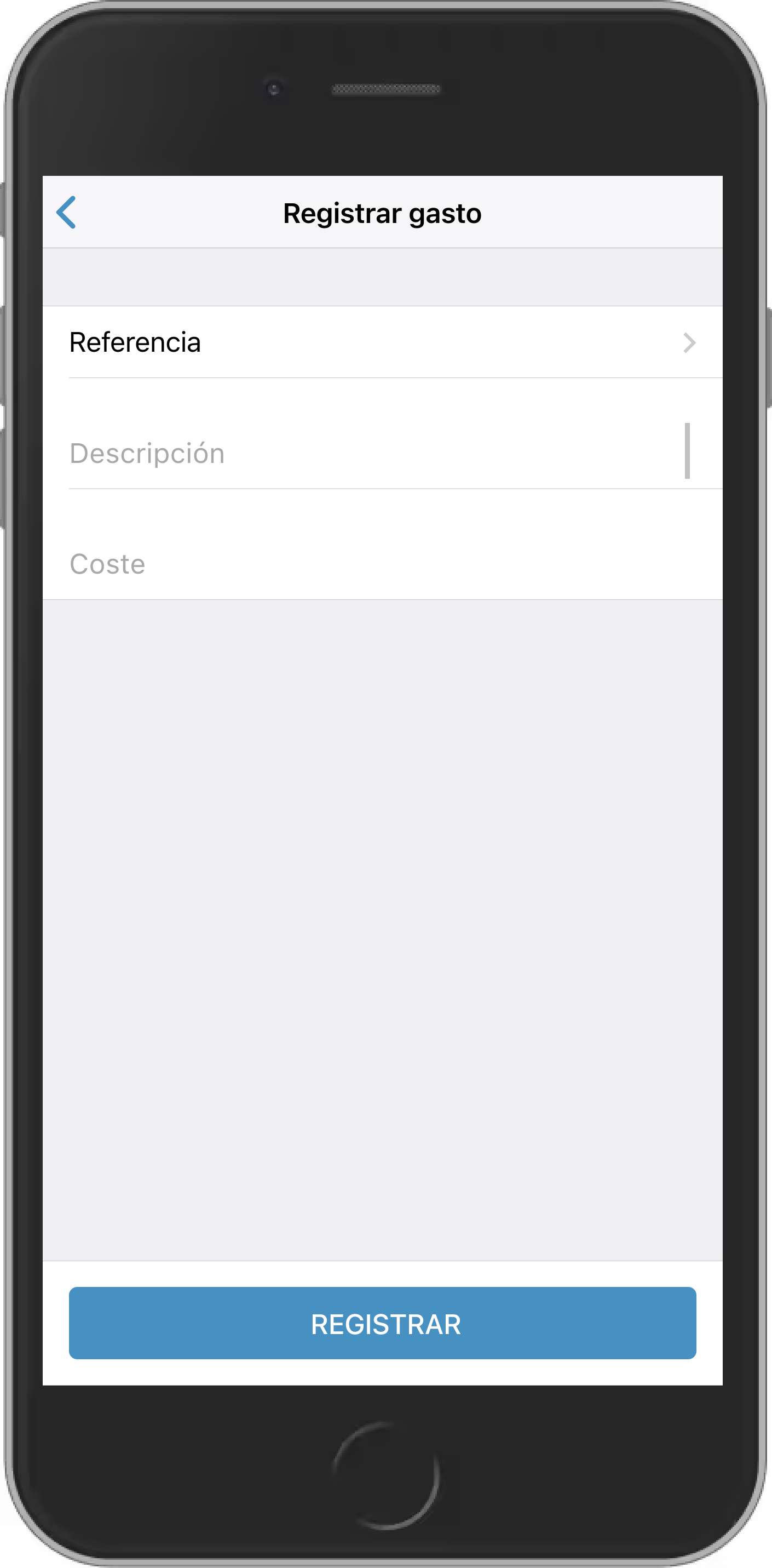 GASTOSPondremos la referencia del gasto si existe, y una descripción, así como el coste del gasto. Una vez indicado pulsaremos el botón REGISTRAR.