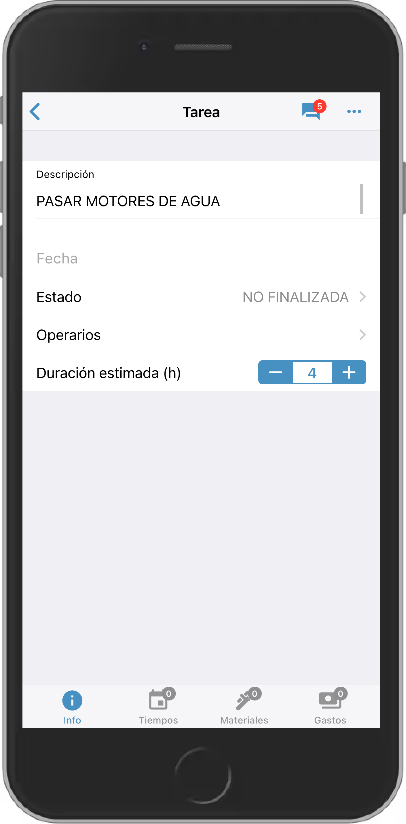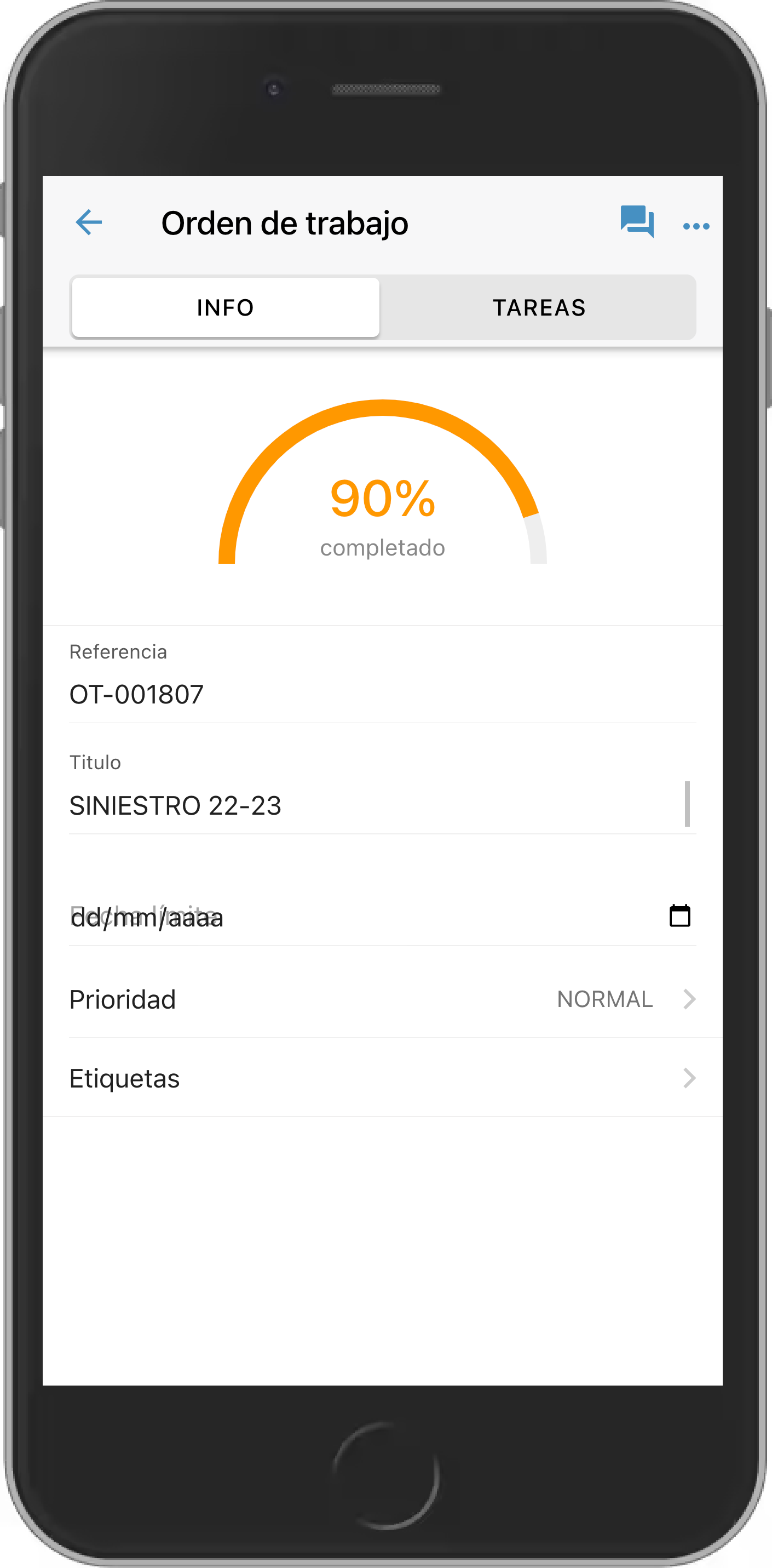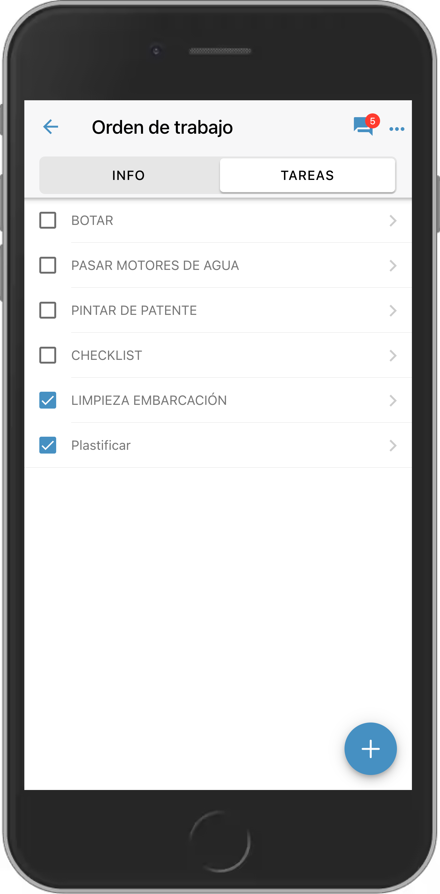 Cuando entramos en la orden de trabajo de una embarcación desde la versión móvil lo primero que se nos muestra es el proceso en el que se encuentra de dicha Orden de trabajo.