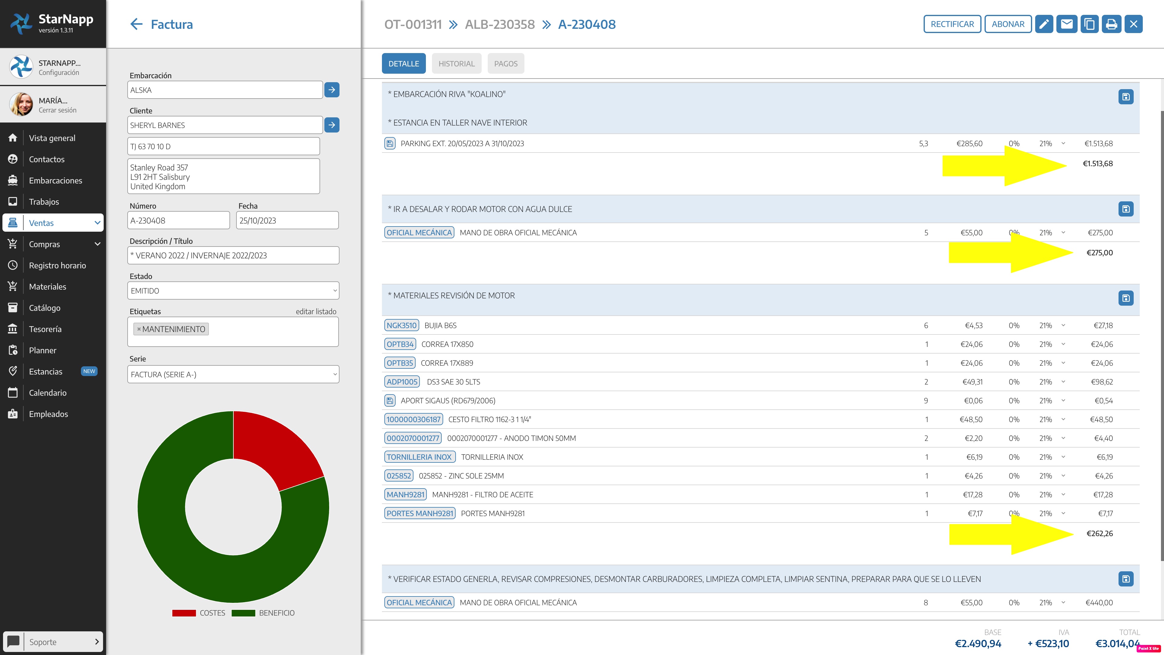 Si queremos emitir un documento, Presupuesto, Albarán, Factura Proforma o Factura a un Contacto distinto al propietario de la embarcación que tenemos en la ficha podemos realizarlo de una forma muy sencilla. Editamos el documento emitido, en este ...